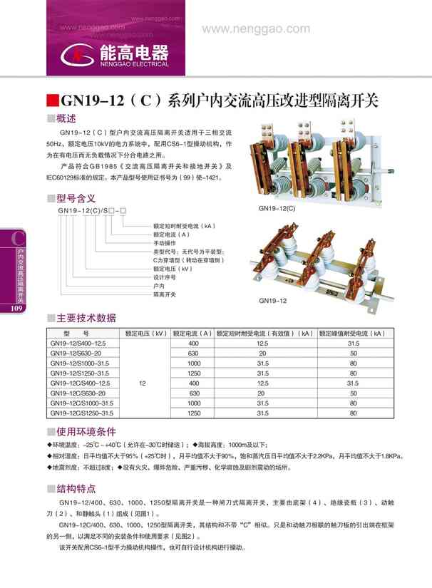 GN19-12(C)系列户内交流高压改进型隔离开关(图文)
